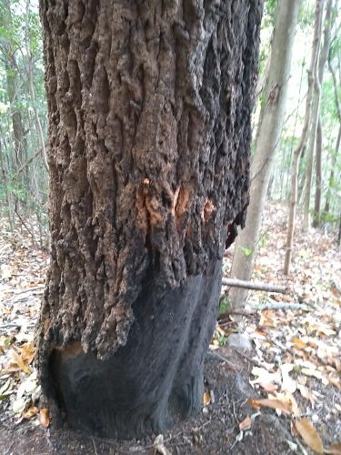 ところを通り、スズメバチの巣の位置を確認した。驚いたことにスズメバチは被雷樹木そのものに巣を作って